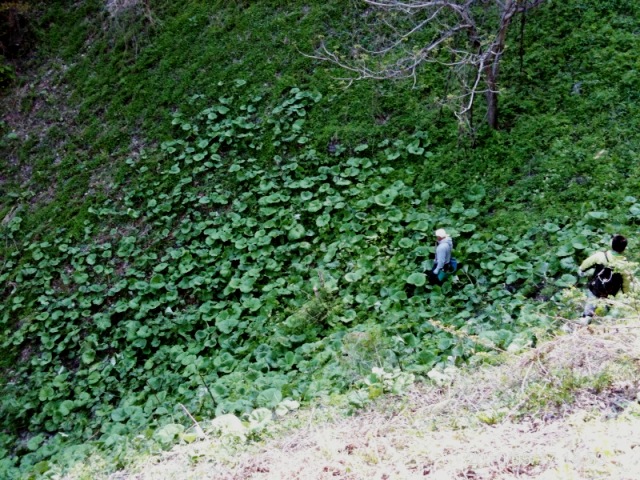 山でシドケの芽出したのを土から掘り出したのも紫・・