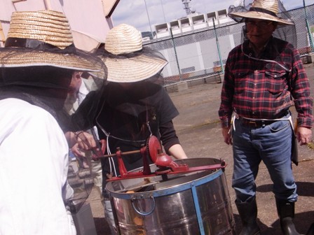 うわ、ヤバイ と逃げると 「クマンバチは刺さないですよ おとなしいから」